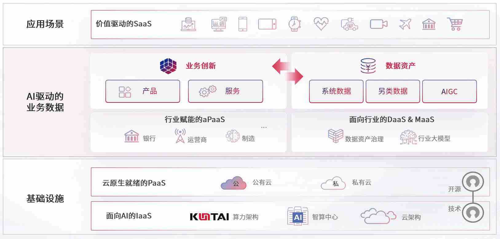 数字时代,,,围绕企业数字化转型的关键要素,,,Z6尊龙时凯数码开创性的提出数云融合战略和技术体系框架,,,,着力在云原生、、、数字原生、、、、AI原生和信创产业上架构产品和服务能力,,为处在不同数字化转型阶段的快消零售、、、汽车、、金融、、、、医疗、、、、政企、、、、教育、、、、运营商等行业客户提供泛在的敏捷IT能力和融合的数据驱动能力,,构建跨界融合创新的数字业务场景和新业务模式,,,,助力企业级客户建立面向未来的核心能力和竞争优势,,,全面推动社会的数字化、、智能化转型升级。。。。